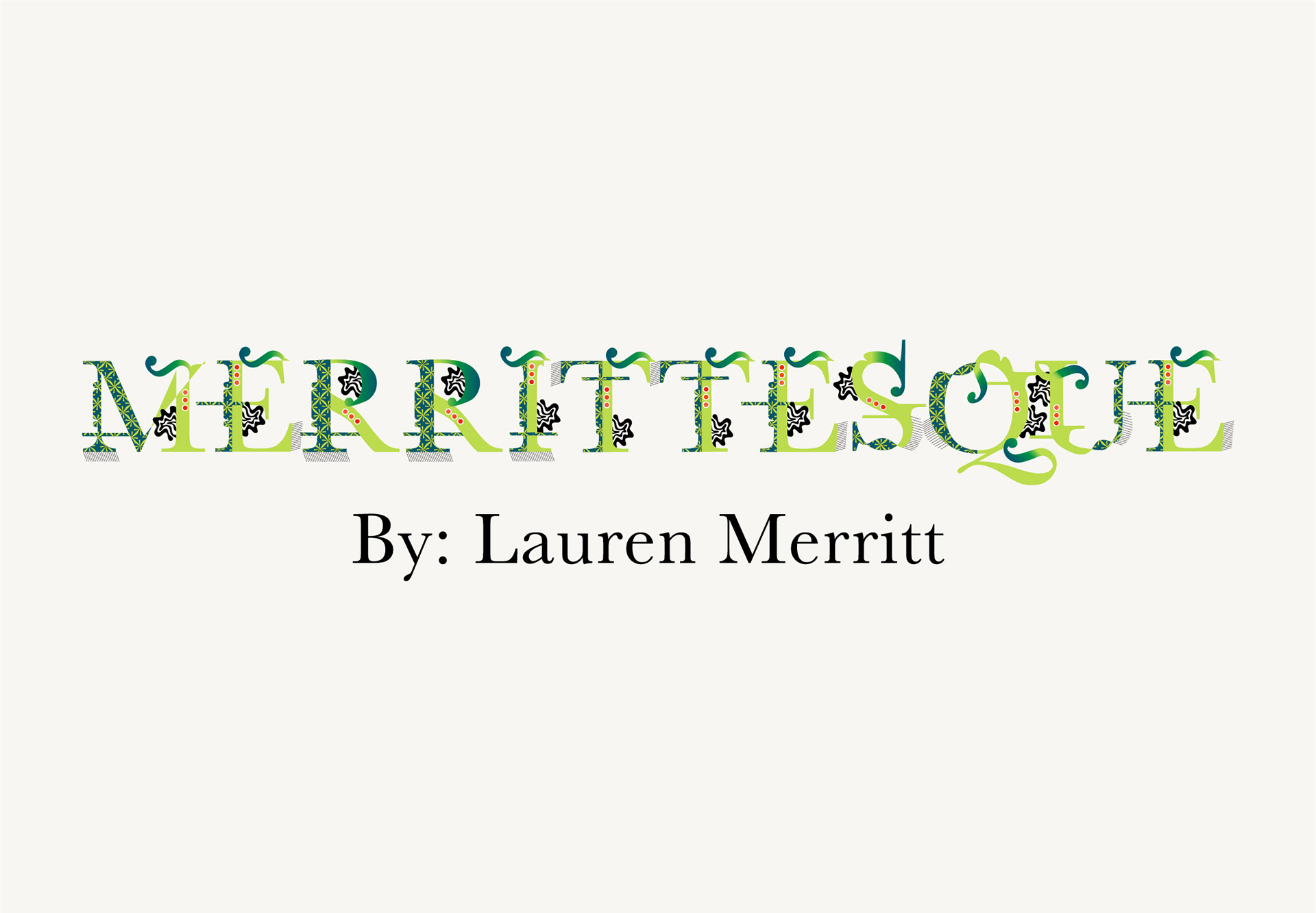This project showcased different typographical elements. I experimented with type design by creating a set of rules to form a unique organized set of working letterforms. I used my letterforms along with traditional digital fonts to establish a hierarchy with type. A bold color palette accompanied the typographical elements. Thoughtfully sequenced pages in which different elements appear in the book. The designed typeface complements the meaning of the book.